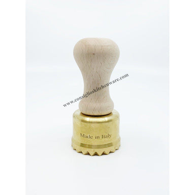 The Brass Round Spring Loaded Ravioli Stamp is made in Italy. Featuring a heavy-duty brass cutting stamp with a robust natural wooden handle for ul...