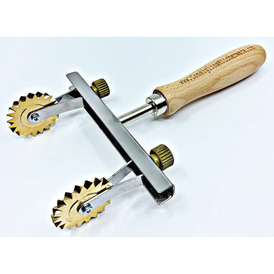The adjustable Brass fluted pastry and pasta cutter with 2 wheels are made in Italy. Featuring 2 heavy-duty brass fluted cutting wheels with a robu...