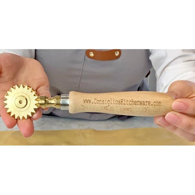 The Brass fluted pastry and pasta wheel are made in Italy. Featuring a heavy-duty brass cutting wheel with a robust natural wooden handle for ultim...