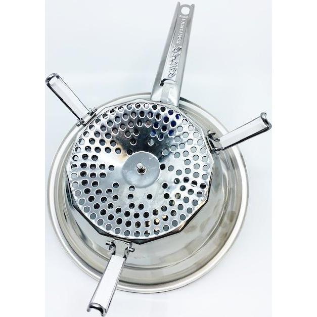 Traditionally used to prepare smaller amounts of tomato sauce puree by placing parboiled tomatoes in the bowl with your choice of 3 disc sizes for a smooth, medium or courser sauce. The food mill will sit on top of a 22 cm bowl/pot.