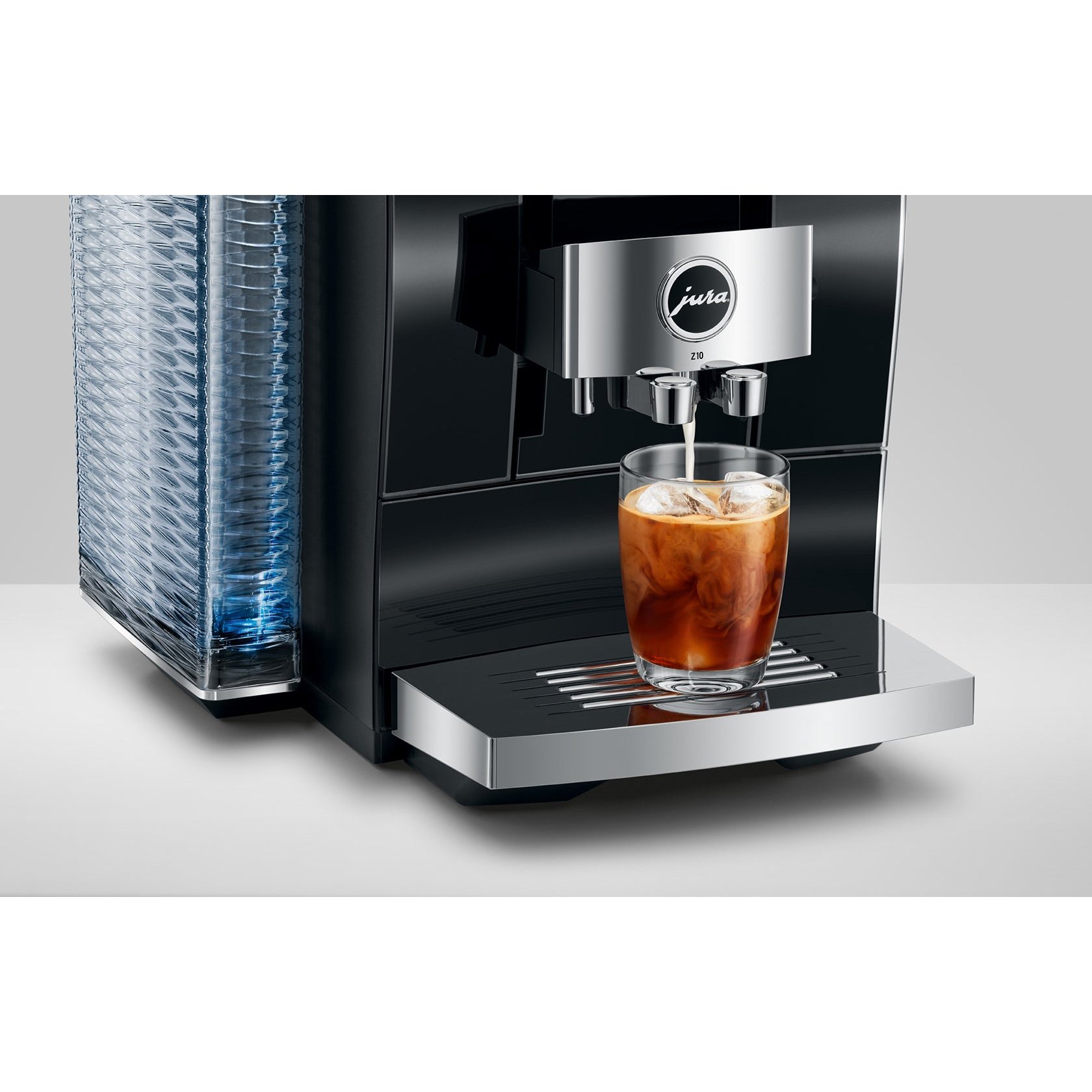 The New Jura Z10 Diamond Black is a masterpiece of Swiss engineering and is designed to create gourmet hot and cold coffee beverages. Offering an impressive 32 beverage options to choose from the Jura Z10 will satisfy all your coffee needs. At the touch of a button, it prepares the full spectrum of hot drinks from intense espresso to on-trend flat white. It also opens up a whole new dimension in the enjoyment of coffee with the introduction of cold brew specialties. This is made possible thanks to the Product Recognizing Grinder (P.R.G.), which recognizes the chosen specialty and instantly and precisely adjusts the fineness of the grind accordingly.