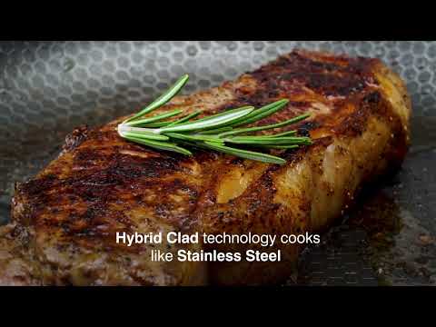 The Meyer HybdridClad 32 cm / 12" combines a raised stainless steel surface with a durable stick-resistant coating to give you the best of both worlds in perfect searing and stick-resistant cooking. Engineered to keep oil in the centre of the pan for better browning and searing, safe for all stovetops and backed by Meyer's exceptional lifetime warranty.