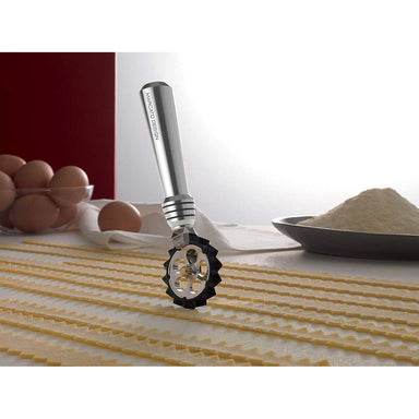 The Brass fluted pastry and pasta wheel are made in Italy. Featuring a heavy-duty brass cutting wheel with a robust natural wooden handle for ultim...