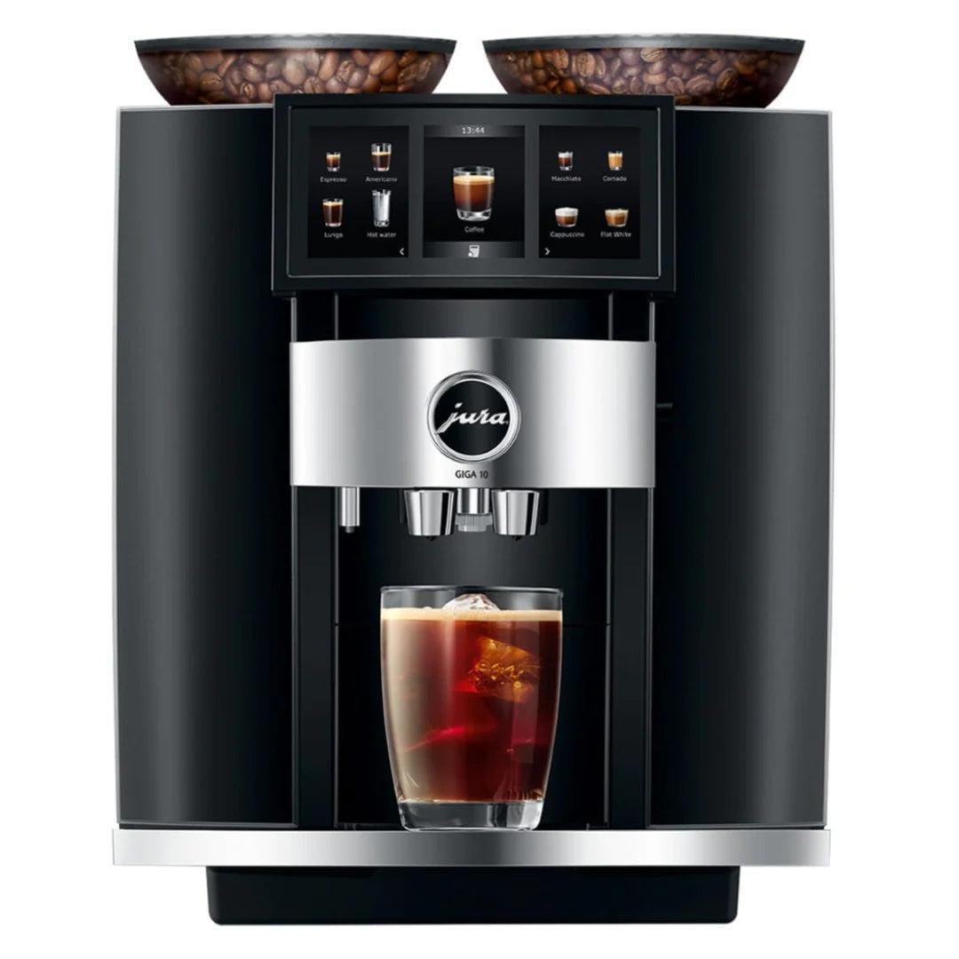 Introducing the new Jura Giga 10 dual hopper, dual ceramic grinder, fully automatic espresso machine featuring the all new revolutionary cold extraction process, panorama panel for intuitive operation, 35 beverage options and modern sleek design for your every coffee need.