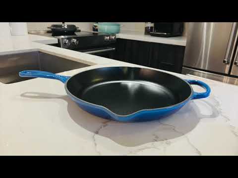 Le Creuset Round Skillets are crafted from Le Creuset’s signature premium quality enameled cast iron. Perfect for searing, simmering or frying, Le Creuset Skillets feature matte black interior enamel, providing the even heating and retention benefits of cast iron without the need to season.