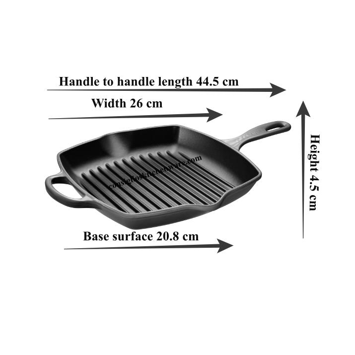 Le Creuset Square Skillet Grill pans are crafted from Le Creuset’s signature premium quality enameled cast iron. Featuring a raised ribbed interior surface, the Le Creuset Square Skillet Grill is perfect for searing, simmering or frying, while also draining excess fats and grease away.