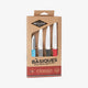 This 4 pc essential kitchen set includes one peeler with 2 edges, one smooth pairing knife, one serrated paring knife, and one tomato knife.