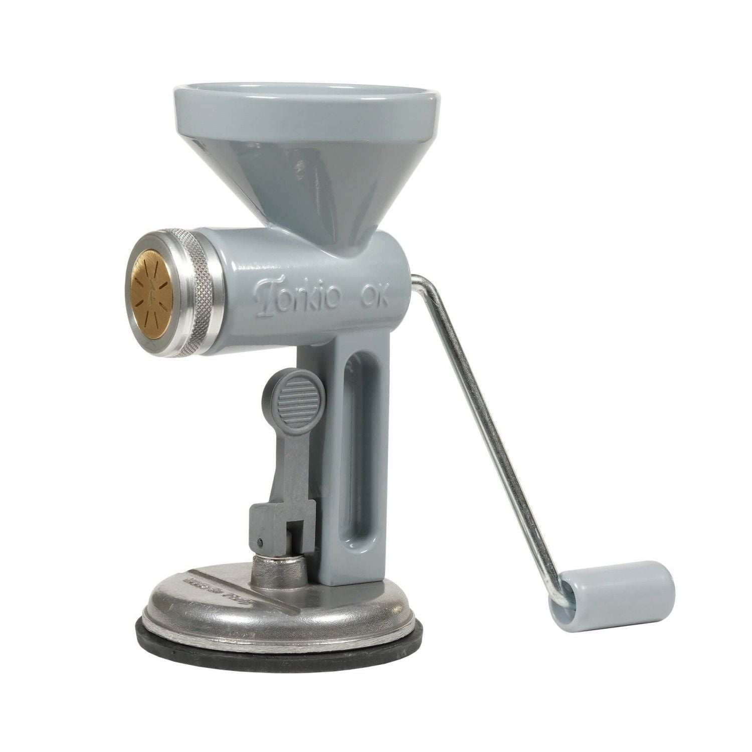 Consiglio's introduces the Torkio Italian pasta extruder, made in Italy with 5 brass dies. This premium heavy-duty extruder includes 5 robust and durable brass dies to create: casarecce, waves, spaghetti, tagliatelle, and torchietti style pasta. The Torkio OK weighs an impressive 1.35 kg. It includes a strong suction base, 5 brass dies, food grade safe plastic auger, die-cast aluminum metal body with heavy-duty steel enamelled with food-safe paint making it durable and safe, aluminum locking ring, extra-long handle, and pestle.